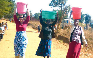 “During my stay in Malawi, I joined the women collecting drinking water. I carried 20 liters and it was tough. Meanwhile, Chrissy (middle) is carrying about 40 liters. Many women do this every day.
